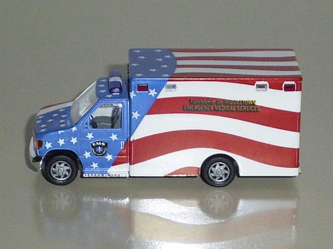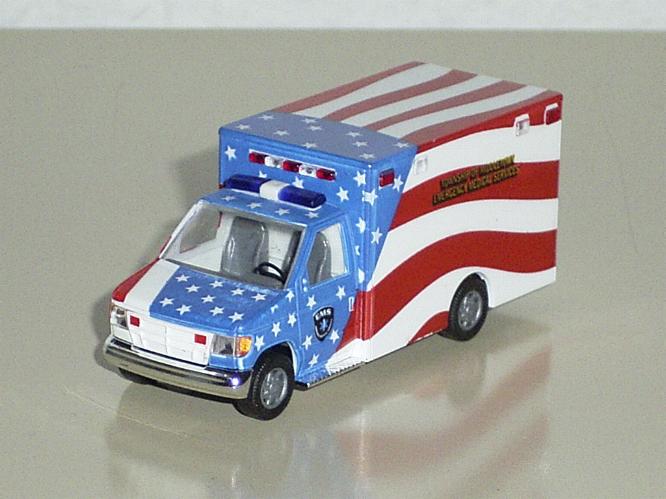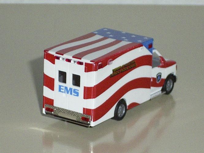 | Das Original wurde in einem New Yorker Vorort nach dem Terroranschlag am 11. September 2001 mit dem Design der amerikanischen Flagge lackiert. Jeder Stern auf dem Fahrzeug symbolisiert einen bei dem Terroranschlag ums Leben gekommenen Mitarbeiter dieser Rettungsstation. | |||||||||||||||||