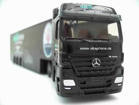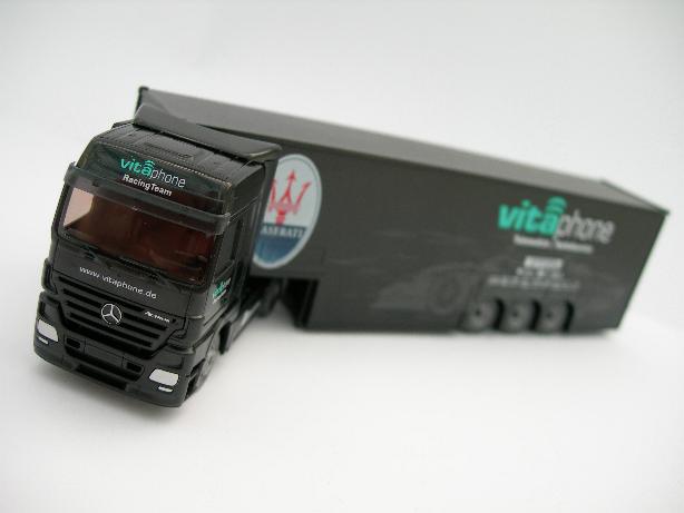 Maik Hackler, Leiter des Vitaphone Racing Shops, erklärt die Bedeutung des Trucks: „Das Vitaphone Racing Team wird von zwei Renntransportern begleitet. Für jeden der großen Auflieger musste ein spezieller Ladeplan entwickelt werden, um einen der Maserati MC 12, Ersatzteile, die Reifenwagen, eine komplette Tankanlage mit Tankfässern und die Verkleidung für die Boxen unterzubringen.“ Das Modell Vitaphone Racing Team „Truck“ kann für 29,90 Euro plus Versandkosten im Internet über www.vitaphone-racing-shop.de bestellt werden.