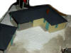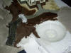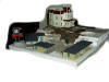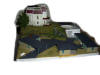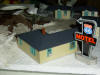 Bau der Grundplatte aus Styropor und Hobby Gips. Erste Stellprobe des Motels (Walthers Build Ups) und anschließende Grundierung der Landschaft.