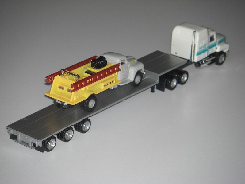 Mack CH 613 with Flatbed Trailer / Ford Fire Truck
